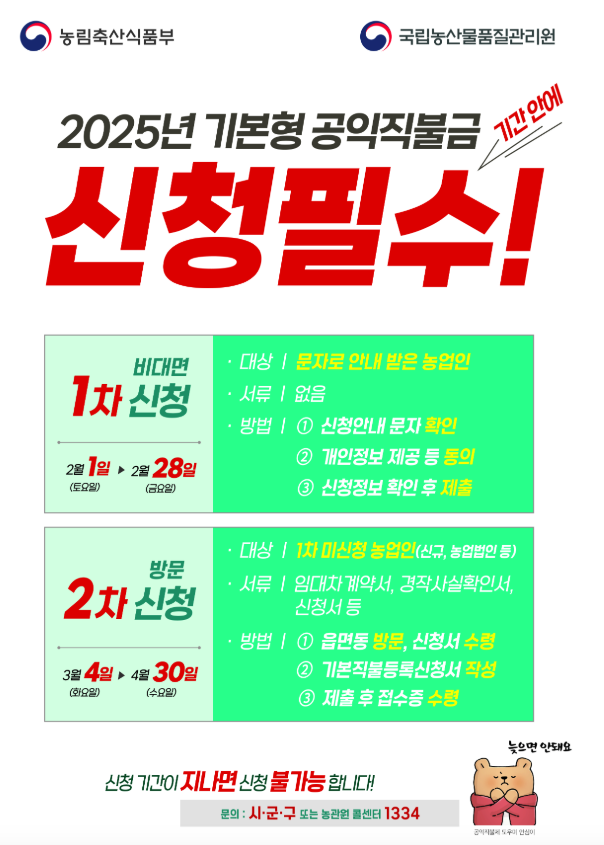 김해시는 오는 4월 30일까지 2025년 기본형 공익직불금 방문 신청을 받습니다.