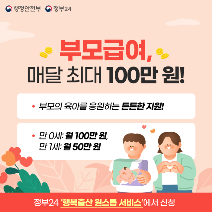 | 부모급여 | 0~11개월 월 100~150만원 지급 | 양육 부모 | 가정 양육 시 지급 |