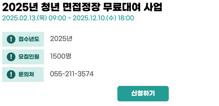 - 지원 불가 대상: 타 시도 거주자, 취업과 직접 연계되지 않은 면접(증명사진 촬영, 모의 면접 등)은 대여 불가