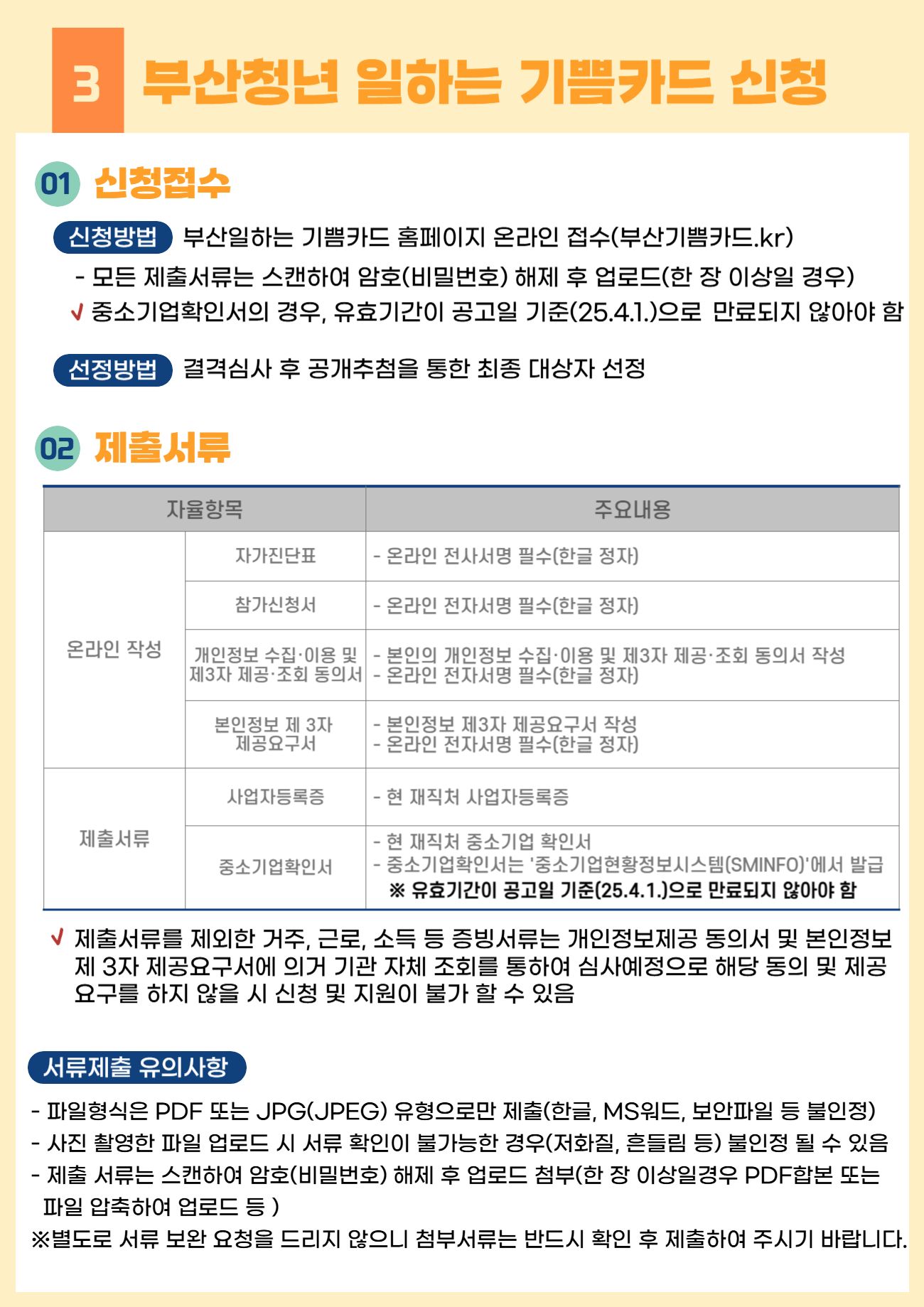 - 부산 거주 청년: 공고일 기준(4.1) 부산에 거주 중이어야 합니다.